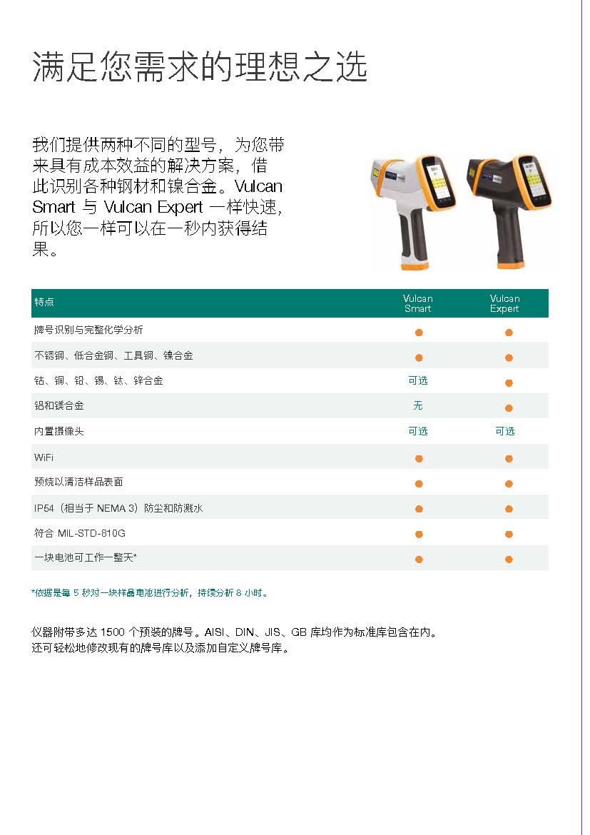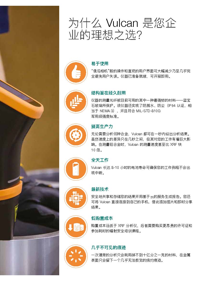Vulcan 是一款耐用且分析速度極快的合金分析儀??郯鈾C(jī)后一秒即會(huì)顯示結(jié)果。且產(chǎn)品使用激光誘導(dǎo)擊穿光譜技術(shù) (LIBS),您無需擔(dān)心X射線的影響。無論您的業(yè)務(wù)是廢料分選還是 PMI 質(zhì)量控制,Vulcan 始終提供準(zhǔn)確且一致的合金 牌號(hào)。
