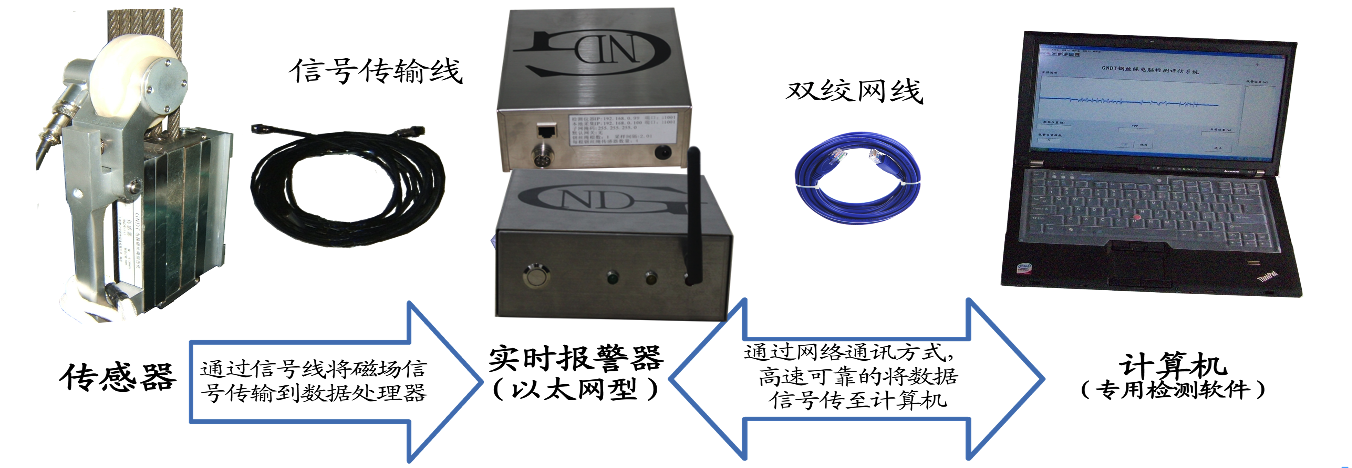 NDTPC15 | (檢測鋼絲繩直徑不大于14mm) | 以太網(wǎng)型多功能實時報警器(有線) 或以太網(wǎng)型多功能實時報警器(無線) | 鋼絲繩監(jiān)控系統(tǒng)軟件 |