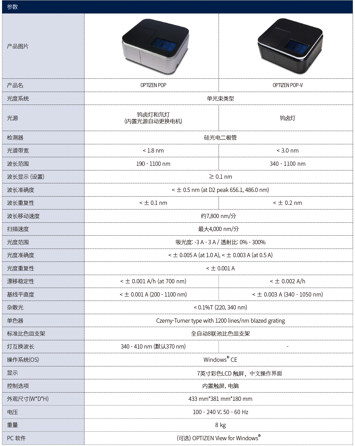 OPTIZEN POP 系列OPTIZEN POP采用自有的高分辨率波長測量模式。OPTIZEN POP系列是單光束分光光度計(jì), 可以向用戶提供穩(wěn)定的性能和優(yōu)勢的價(jià)格。根據(jù)產(chǎn)品的型號(hào)分為POP, POP-V型。
