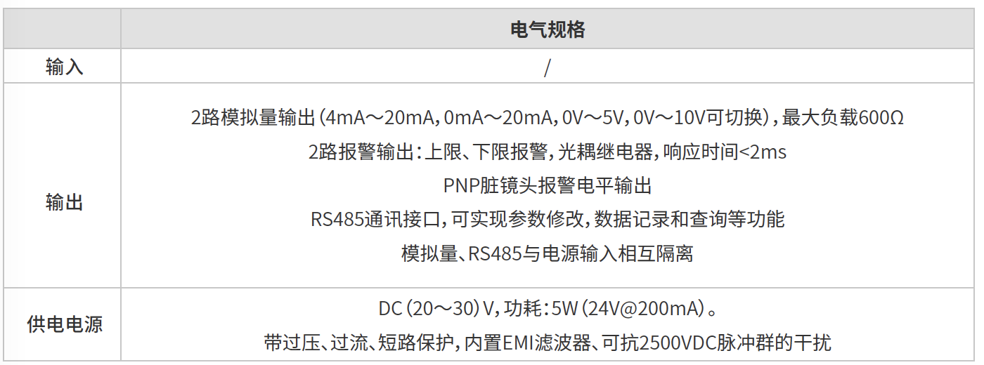 豐富的外設(shè)接口:獨(dú)立的模擬量輸出、報(bào)警輸出、電平輸出、RS485通訊接口