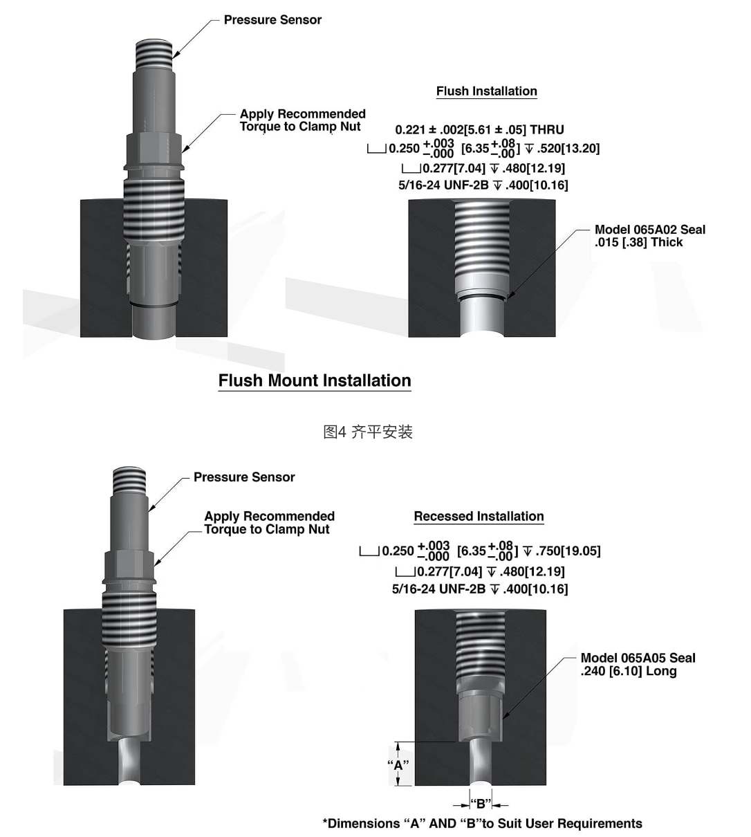 壓力傳感器的精密安裝對于**測試是至關(guān)重要的。每次安裝前請確認傳感器說明書中的安裝尺寸圖,當您有疑問時,請聯(lián)系PCB?工程師取得詳細的安裝指南。使用精密的機加工設(shè)備來安裝螺紋孔,并且使用推薦的安裝扭矩。請使用PCB?傳感器提供的安裝硬件,我們還提供不同標準的螺紋適配器來簡化一些傳感器的安裝。